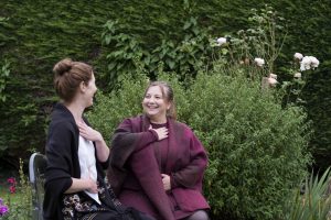 Alternative therapies,United Kingdom,A woman and a therapist talking in a garden.